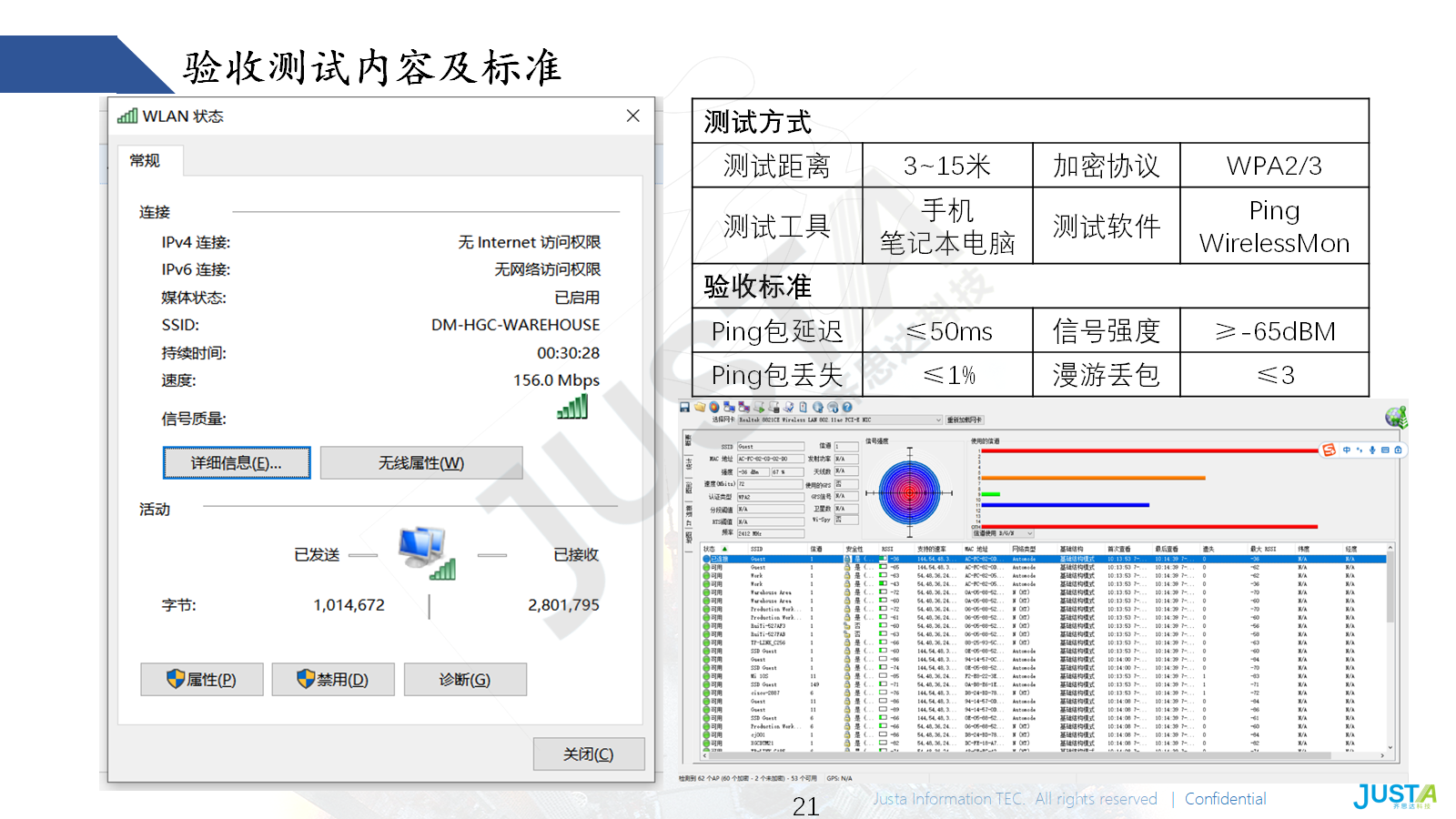 项目完成后,通过专业工具测试目标区域无线性能——信号强度≥-65dBm,Ping包延迟≤50ms,丢包率≤1%,漫游过程中丢包≤3次,完全满足车间生产数据传输与终端接入需求。