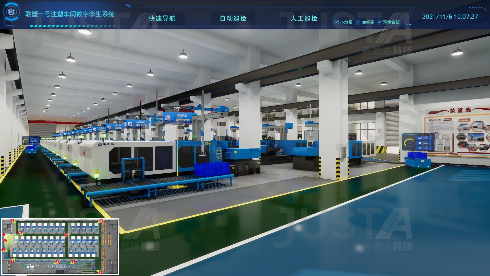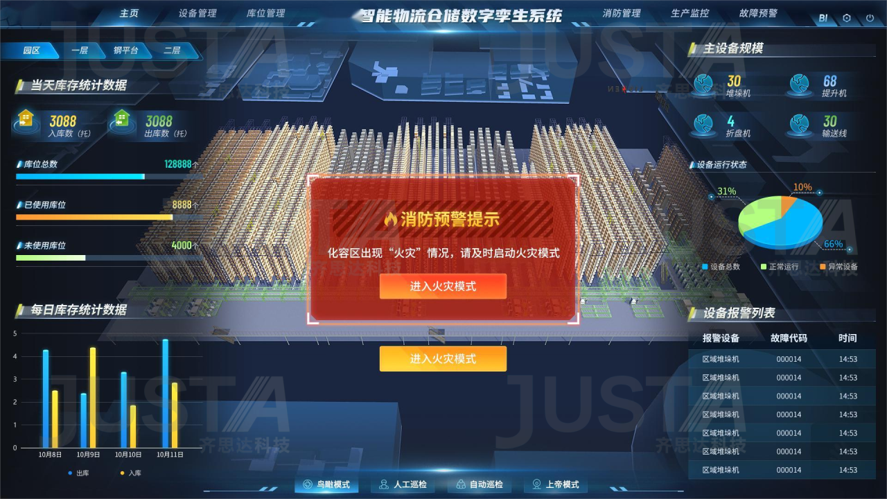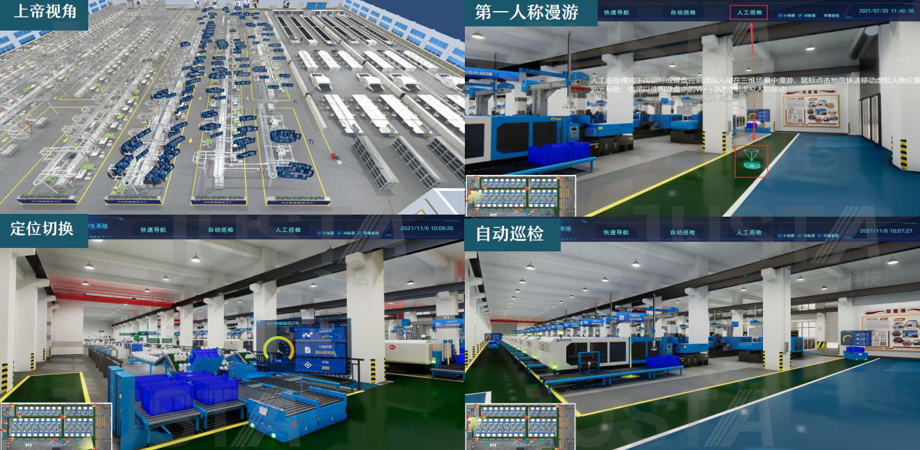 3D实景还原园区全场景,设备运行、产线流转、人员通行实时可视,全局总览+细节检查,管理无死角;